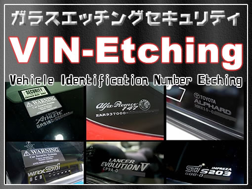 自分の愛車である唯一の証。 車両製造時に車体に刻まれた固有のナンバーである車台番号を、ガラス4面に永久刻印することによって車台番号の改ざんを困難にさせます。また、オーナーの防犯意識の高さを視覚的にアピールし、犯行意識を抑止させます。